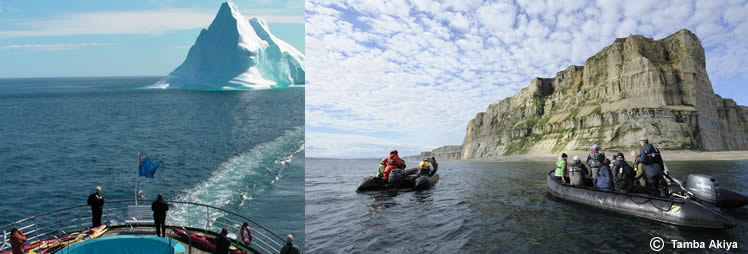 クルーズ | 11泊12日間の北極地域と海の調査クルーズにでかけます。 *以下の場所を訪れる予定ですが、天候によりいけない場合もございます。 ●1日目:クジュアック 極北エリアへの出発地点の町 ●2日目:アクパトック島 セイウチやホッキョクグマが頻繁に観察される場所です。 また世界でも最も大きなウミガラスのコロニーがあります。 ●3日目:カンキクスジュアック ●4日目:ディッジス島 ここでもウミガラスのコロニーをご覧いただけるチャンスがあります。 ●5日目:ケープドーセット 世界でもイヌイットアートで知られるケープドーセットではアーティストのスタジオを訪れ、彫刻や版画などの製作現場をご覧いただきます。 ●6日目:キンミルト ●7日目:モニュメンタル島&サベージ島 イヌイットの祖先であるパラエロエスキモーの遺跡が残されています。 また海洋生物の宝庫でもあり、セイウチ、アザラシ、そしてホッキョクグマに出会うチャンスがあります。 ●8日目:カンバーランド入り江の沖合い ●9日目:デービス海峡 ●10日目:イルリサット Ilulissatはグリーランド語で氷山という意味です。この氷のフィヨルドはユネスコの世界遺産にされており、氷河の動きが最も活動的な場所のひとつとして有名です。一日に約19メートルの氷河が動いています。 ●11日目:イテイレク 北極圏の町です。実際の北緯66度33分のラインはこの町から南に200mの場所になります。 ●12日目:カンゲルススアーク *アクティビティーについて 毎晩次の日のアクティビティーと出発時間が発表されます。 基本的には毎日ゾディアックに乗りアクティビティーに出かけます。ゾディアックは12名乗りですが通常7~8名が1つのグループとなり行動します。クルーズ船には全部で7~8台のゾディアックを乗せておりますが、アクティビティーの長さや移動の距離によっては交代で1台のゾディアックを使用する場合もありますのでアクティビティーの出発まではクルーズ船で ゆっくりお時間をお過ごしください。 海の上からシロクマやセイウチを観察する日もあれば、上陸しハイキングをして極北ならではの景観や野生動物、先住民文化に触れる機会が多く設けられています。ハイキングは1~3時間程度とその場所によりさまざまです。 お客様の体力、ご希望によってグループを分けて歩くことになります。 |
