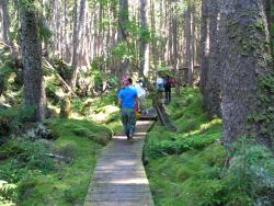 レッドシダー(米スギ)、イエローシダー(カナダ桧)、スプルース(トウヒ)などの巨木針葉樹林群とその足元を覆いつくすコケの深さは圧巻です。
