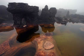 地球上で最古の部類に入る岩石でできた100を超すテプイ。地上と1000m以上もの絶壁で隔てられた特異な環境は周囲の平原とは異なる動植物相をもちます。ツアーではベネズエラ・ブラジル・ガイアナ国にまたがるロライマ山の頂上にしか見られない植物、いろいろな形の奇岩とロライマ・テプイでしか見られない黒いカエル(ANOMAGLUSSUS RORAIMA)を探しましょう。
