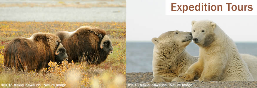 2012年は各回延べ70頭以上のシロクマを始め、シロフクロウ、ジャコウウシ、雄のムース、ドールシープとの出会いがあった、極北の大自然を満喫するツアーです。