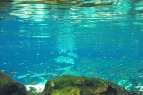 プランクトンや微生物が生息していないため、非常に透明度が高く、また空から差し込む陽光に照らし出される泉の風景は一見の価値があります!!