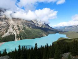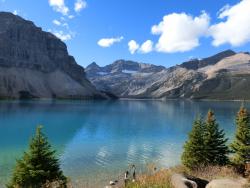 カナディアンロッキー | 終日 | トレッキング③ボウ峠 カナディアンロッキーの中でも屈指の景勝地ペイト・レイクからスタートし、ボウ峠をつらぬくハイウエイとボウ・レイクを見おろします。 |