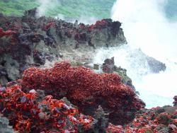 毎年雨季の始まりになると、沢山の成熟したクリスマスアカガニが突然森から海岸へ壮大な大移動を繰り広げます。海まで辿り着いたカニは、卵を海で産卵します。