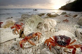 クリスマス島 | 早朝 | アカガニの移動を見学します クリスマス島は世界で最も壮大な海鳥の繁殖地の一つで、 年間約8万羽が巣を作ります 午後からはバードウォッチングをお楽しみください |