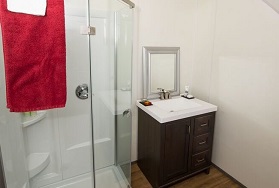 部屋のバスルームには、シャワー、トイレ、洗面台、石鹸、シャンプーが備わっており、快適に過ごすことができます。