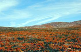 【砂漠に咲くお花】、その響きだけでも素敵ですが、ひとたび目の前に姿を現した奇跡の絶景には、ただただため息がでるばかりです。一面を彩るのは、カリフォルニアの州花カリフォルニアポピーや、アイランドツリーメロウ等。