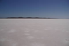 赤茶色の大地に存在する「塩湖」では、琵琶湖の6倍以上というスケールと純白の神秘を堪能します。
