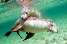 専用車 | ベアード湾へ 到着後、小型船で海洋哺乳類観測クルーズ&スイミングを行います。 [所要時間:3時間] 友好的で好奇心旺盛のバンドウイルカが船の船首が作る波に乗って遊ぶ様を見たり、浅瀬ではイルカと一緒に泳ぐことも出来ます。 クルーズ中、オーストラリア南海岸では最も高い断崖(160m)の景色も見ることが出来ます。 オーストラリアアシカ居住区の訪問(安全な浅瀬)では、その愛嬌たっぷりの仕草を堪能します。水中では目と目が合うほど傍までやってくる好奇心旺盛の動物ですが、触れることは出来ません。 |