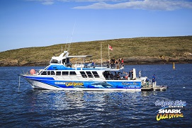 6 | ポートリンカーン | 終日 | ホワイトシャーク(ホオジロザメ)ケーブダイビングへ [所要時間:約12時間] ボートにてホワイトシャークのスポットのネプチューンアイランドへ。幸運にもホワイトシャークが現れたらケージダイビングをお楽しみください。 ※ダイビングの経験、ライセンスは必要ありません ※ボートからシャークウォッチングだけでも可能です |